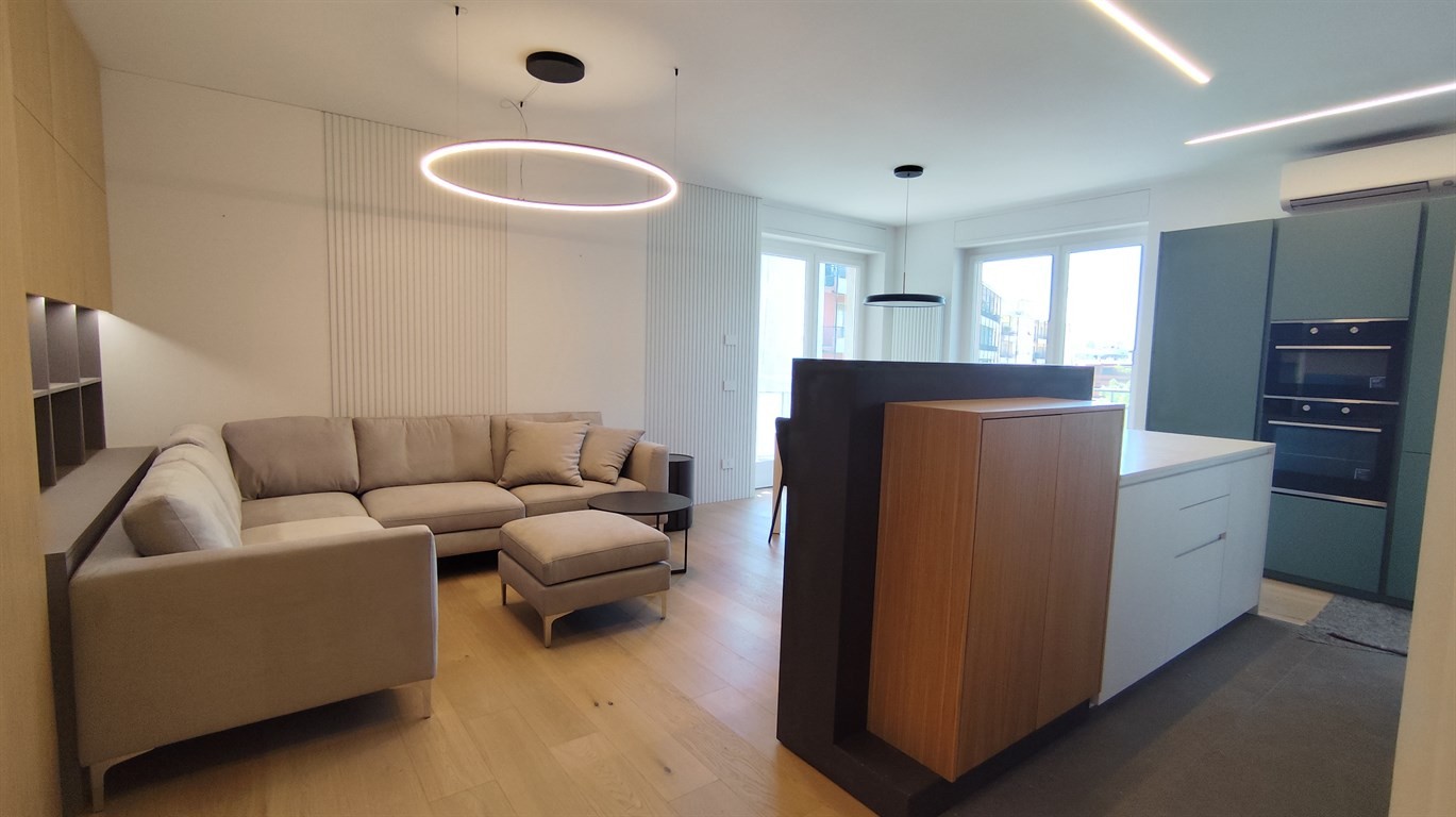 La zona living è composta da un ampio e luminoso soggiorno e moderna cucina a vista di design con piano induzione. La zona giorno affaccia su una vivibile balconata di circa 10mq. La zona notte è composta da 3 camere da letto di cui una matrimoniale e tutte con accesso a balconata di circa 8mq servite da due bagni di cui uno con zona lavanderia.
