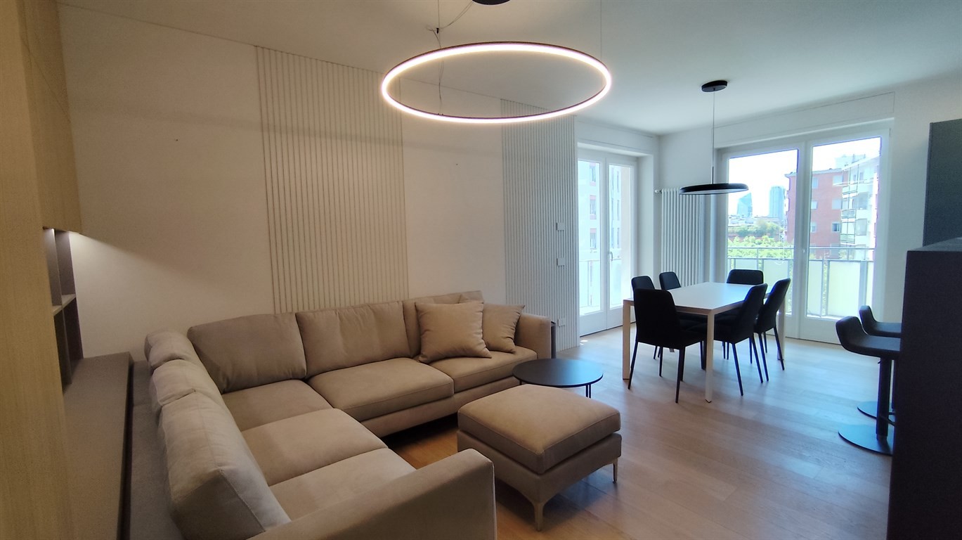 Expo Immobiliare propone in locazione bellissimo 4Locali di pregio ristrutturato finemente da architetto con arredo e finiture di elevata qualità e di design. L'appartamento è situato in Via Cagliero, 8 e più precisamente posto al sesto piano con ascensore in palazzina signorile anni '70 dotata di servizio di portineria full time. L'appartamento essendo situato a un piano alto e godendo di tripla esposizione è molto luminoso e grazie alle sue due spaziose balconate gode di una vista panoramica sullo skyline di Milano. L'immobile si sviluppa su una superficie totale di 130mq ed è composto da uno spazioso ingresso, dal quale si apre un corridoio che divide la zona giorno dalla zona notte.