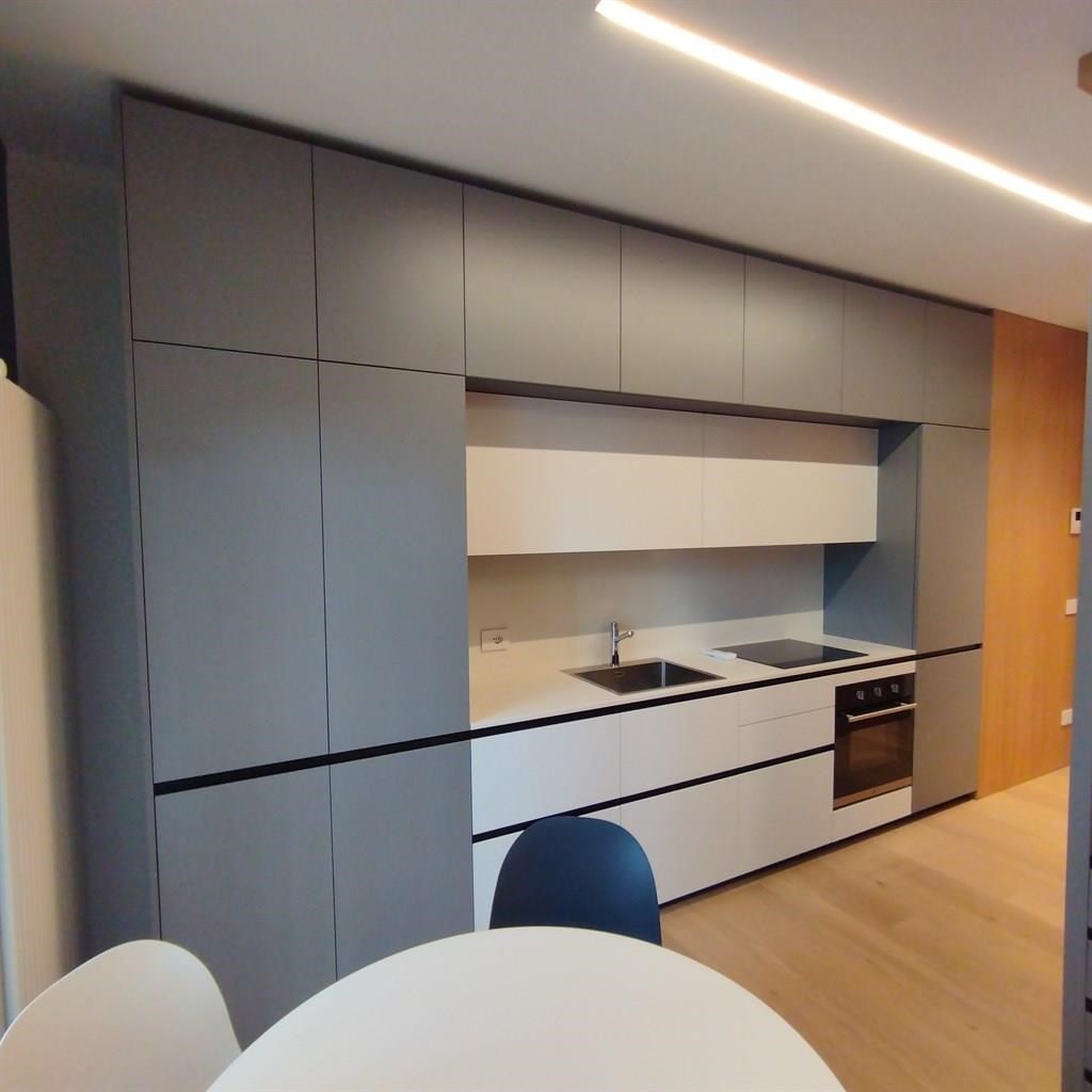 La zona living e notte è arredata con mobili nuovi con divano letto ,la moderna cucina a vista di design ha il piano ad induzione. La zona giorno affaccia su una vivibile balconata .