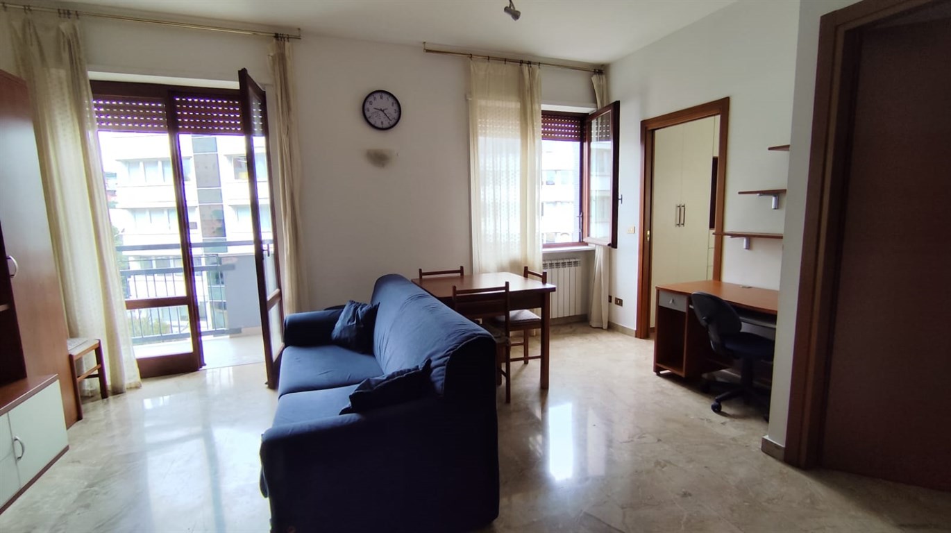Il bilocale di 55mq circa è posto al terzo piano di cinque in una palazzina anni '70 con servizio di portineria full time. L'appartamento è molto luminoso, tutti gli ambienti compreso il bagno sono finestrati, il bilocale è arredato.
